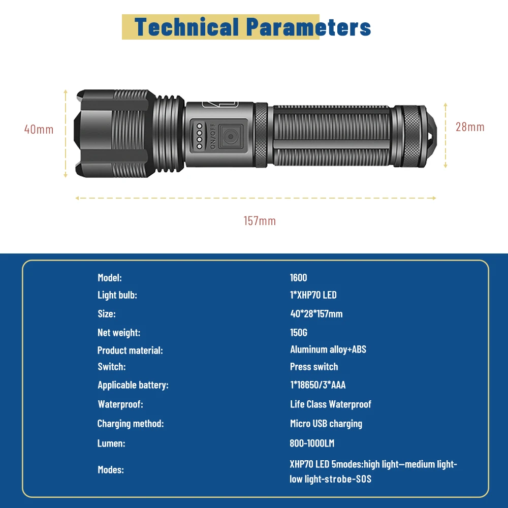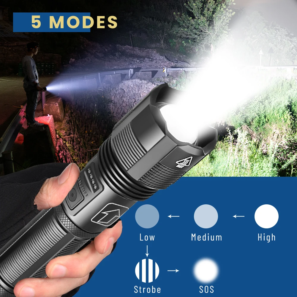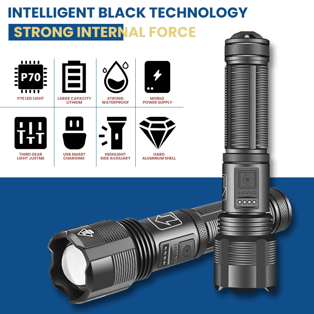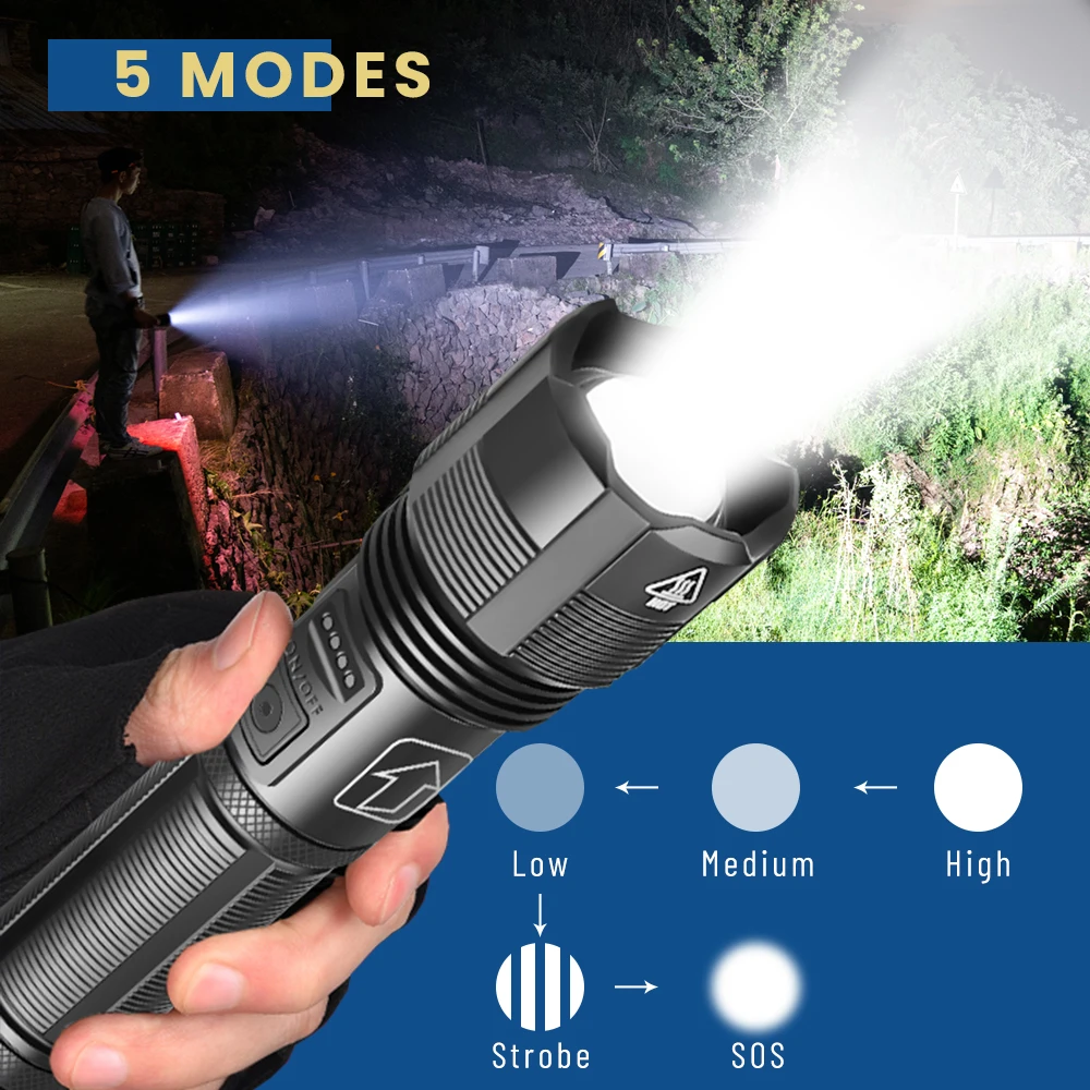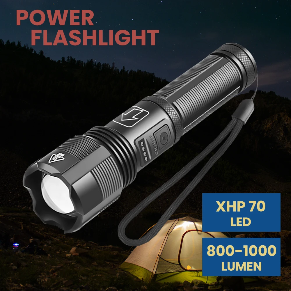 Светодиодный фонарик высокой мощности XHP70, USB Перезаряжаемый Фонарик 1000 лм, водонепроницаемый фонарик, регулируемый фонарик для фотоохоты