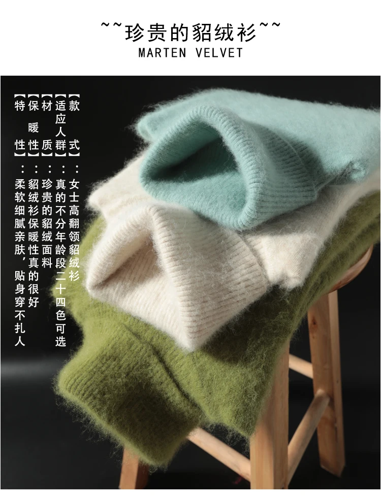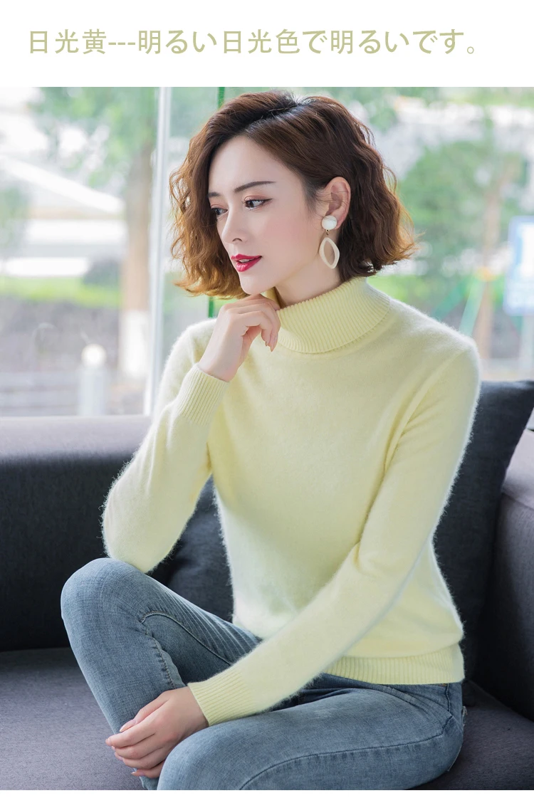 2021 ОсеньЗима 100% чистый норковый кашемировый свитер женский вязаный пуловер с высоким воротником дикая теплая однотонная стандартная короткая Базовая рубашка