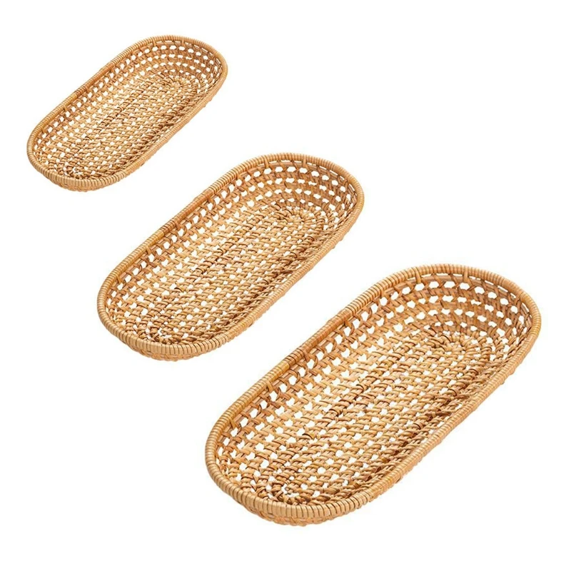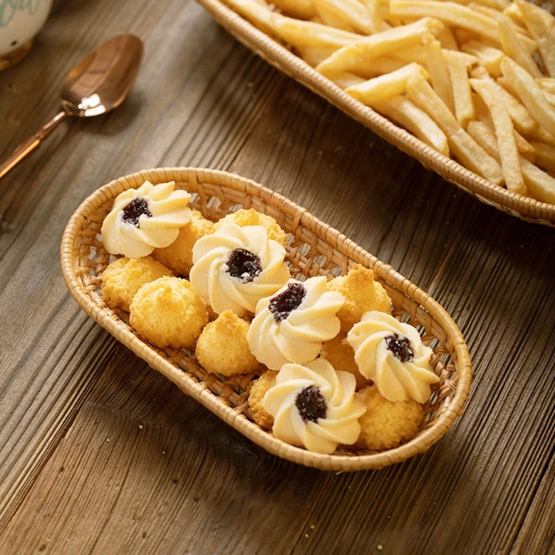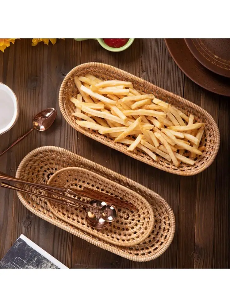 Плетеная плетеная корзина из ротанга ручной тканый поднос для хлеба Настольный поднос для фруктов и овощей 270F