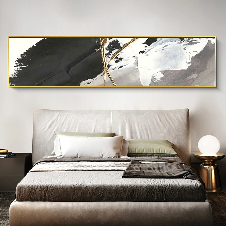 Абстрактные мазки кистью черные и белые чернила холст печать картин...