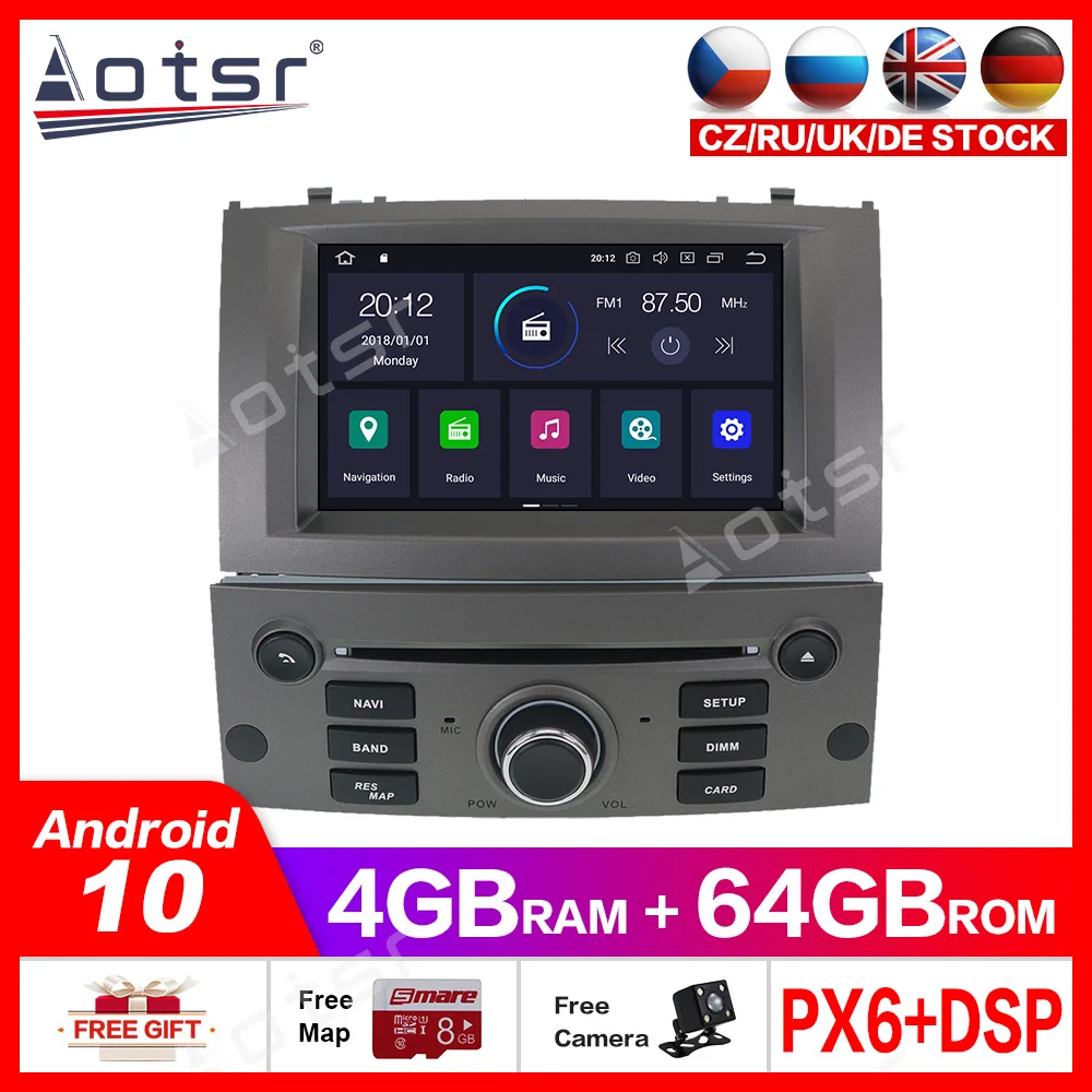 PX6 4 + 64 Android 10,0 автомобильный DVD стерео Мультимедиа для Peugeot 407 2004-2010 радио GPS Navi Аудио Видео Стерео головное устройство IPS экран