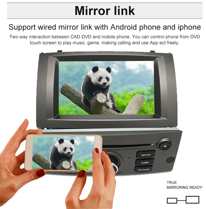 Поддержка проводной зеркальной связи с телефоном Android и Iphone.