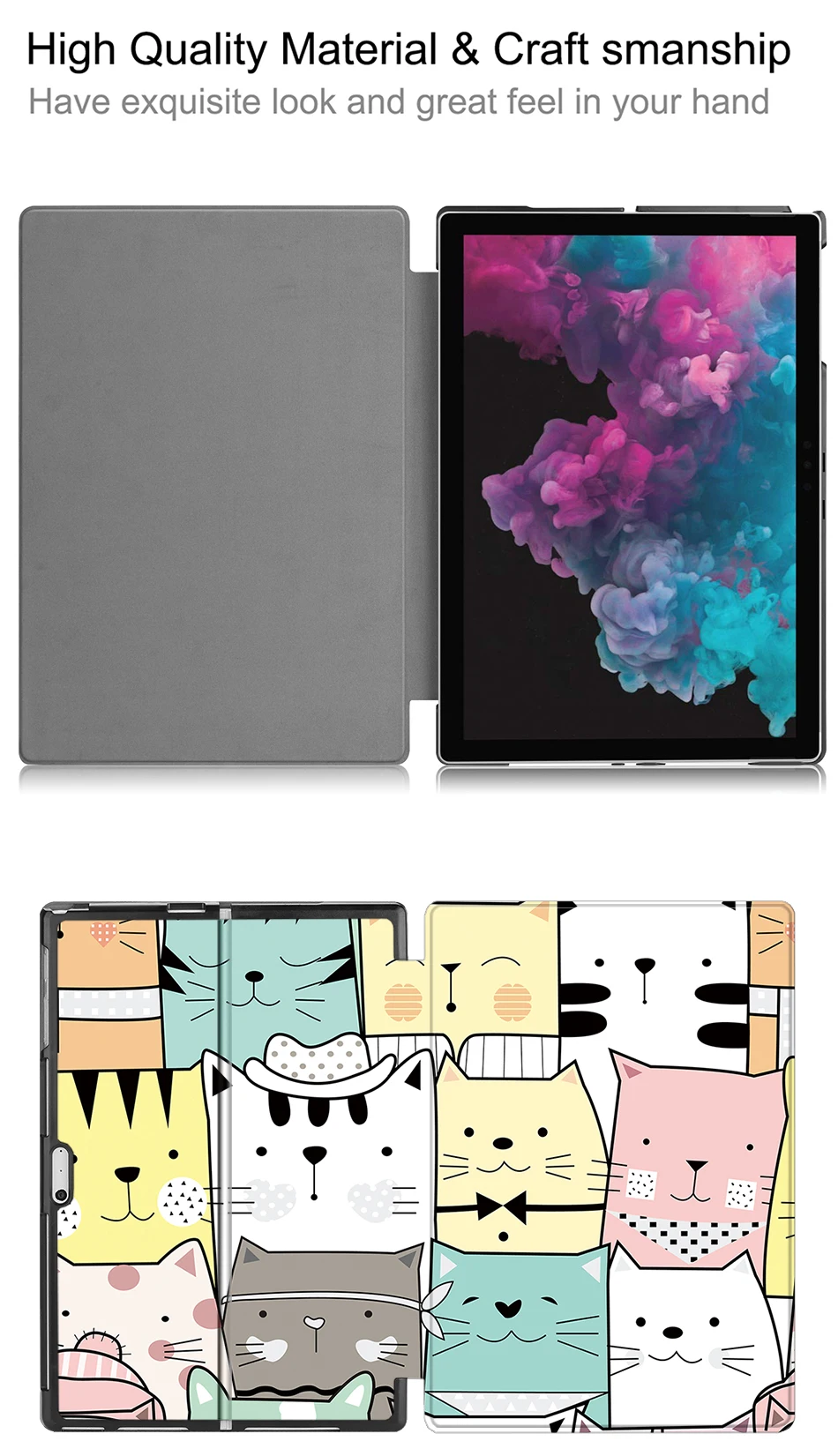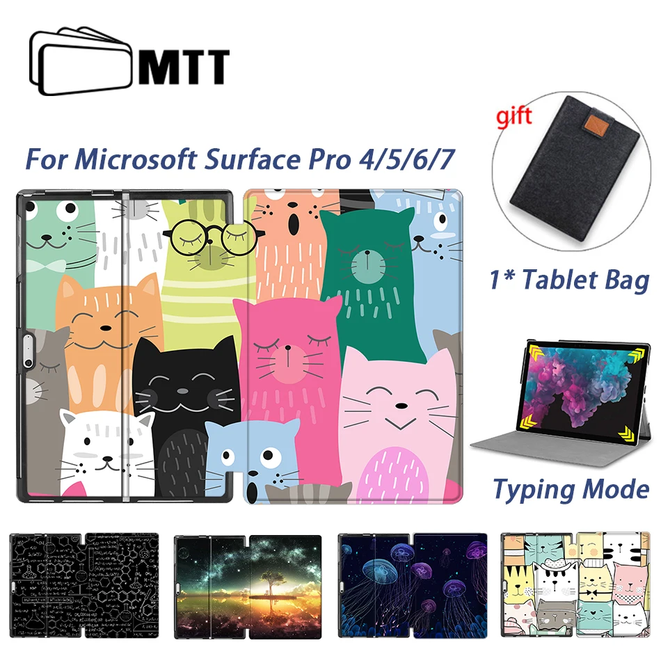 Чехол для планшета MTT для Microsoft Surface Pro 4 5 6 7 12,3 дюйма, трехслойный флип-чехол из искусственной кожи с подставкой, умный защитный чехол