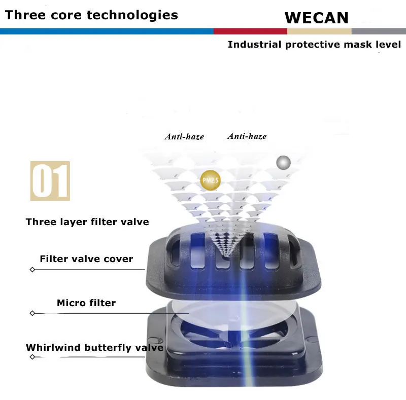 Маска для лица Wecan PM2.5, тканевая маска для лица, Пылезащитная, с углеродным фильтром, респиратор, многоразовая черная