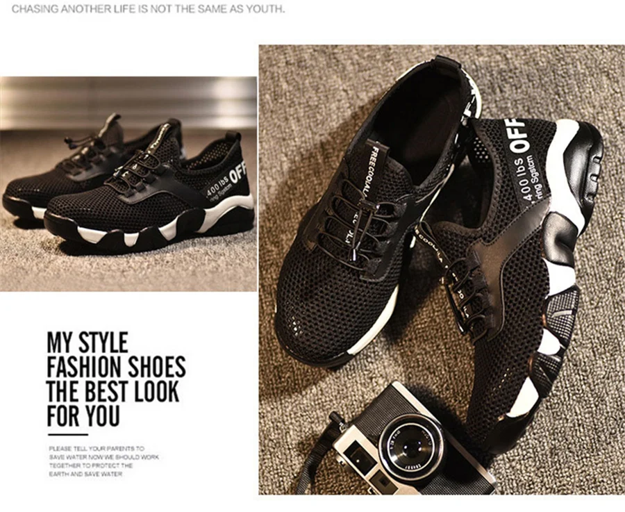Мужские кроссовки со стальным носком, летние, дышащие, легкие, с за...