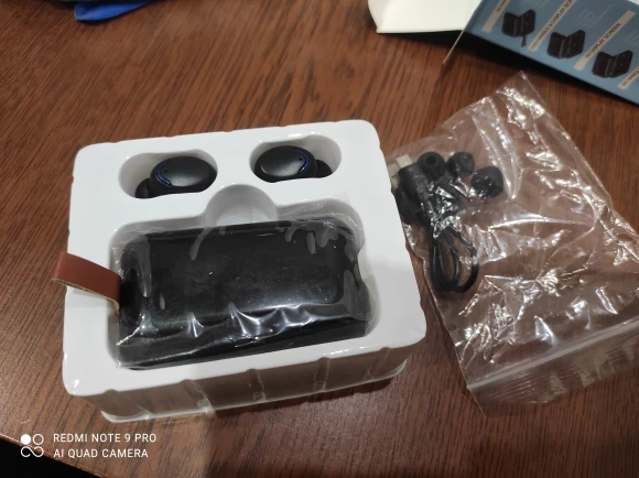 Хороший звук, большой тяжёлый кейс для зарядки. Не было сопряжения наушников друг с другом, но вроде нашлись ))). Пока доволен.