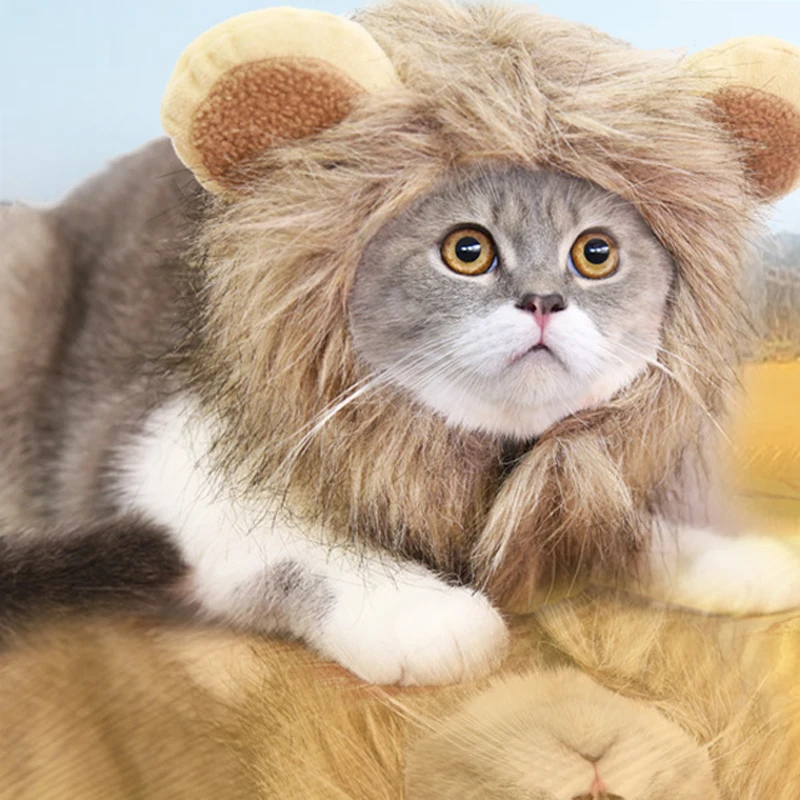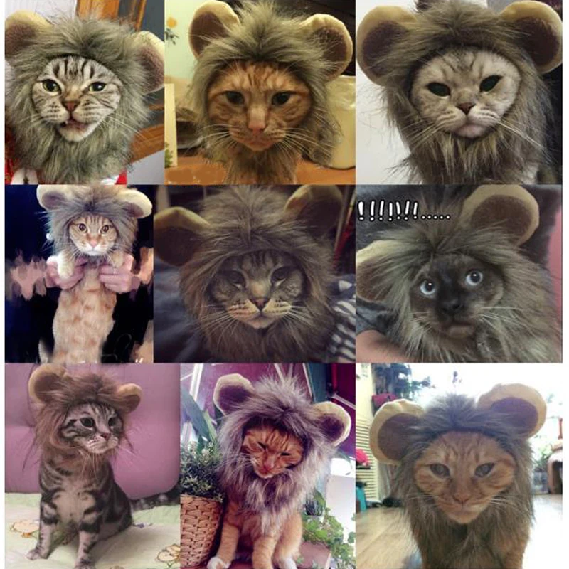 Забавный парик для кошек, имитация фетра, имитация Львиной шерсти, голова с ушками, головной убор для украшения, сохраняет тепло зимой