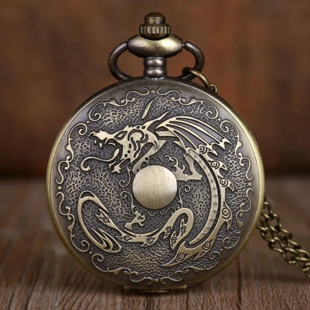 Уникальные антикварные кварцевые карманные часы в стиле стимпанк с огненным драконом ожерелье подвеска с цепочкой подарок белый циферблат
