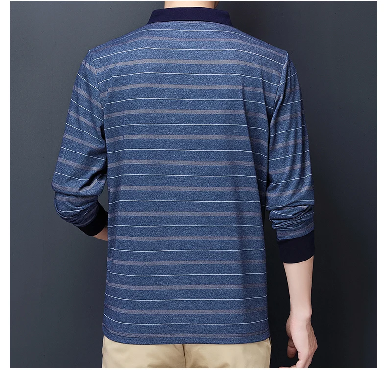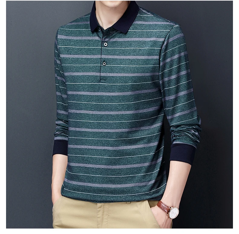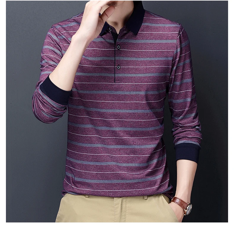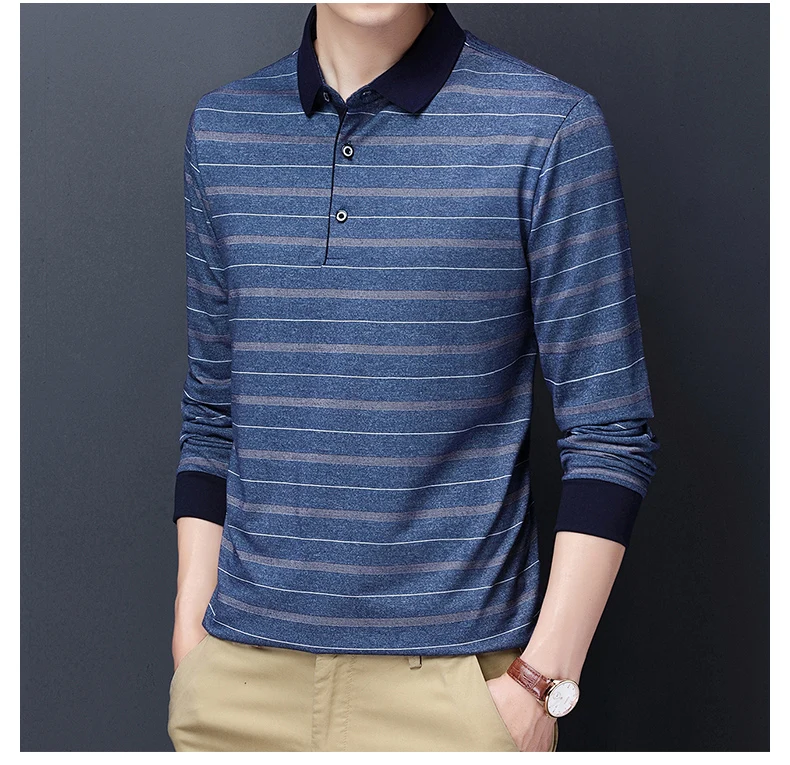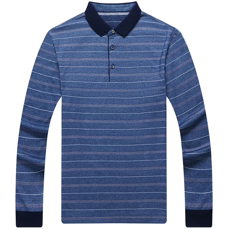 Рубашка-поло мужская с длинным рукавом, в полоску, T952