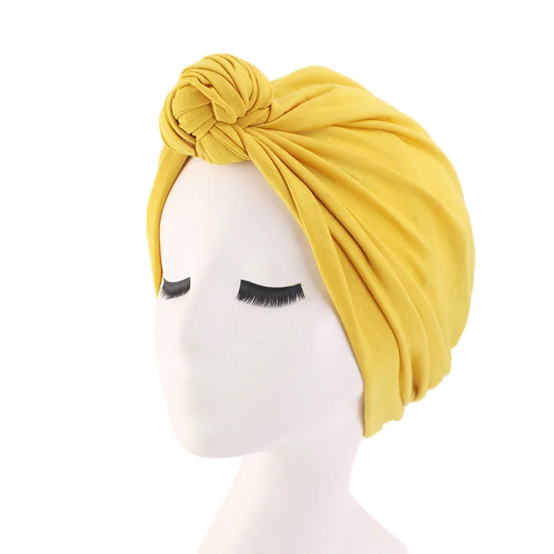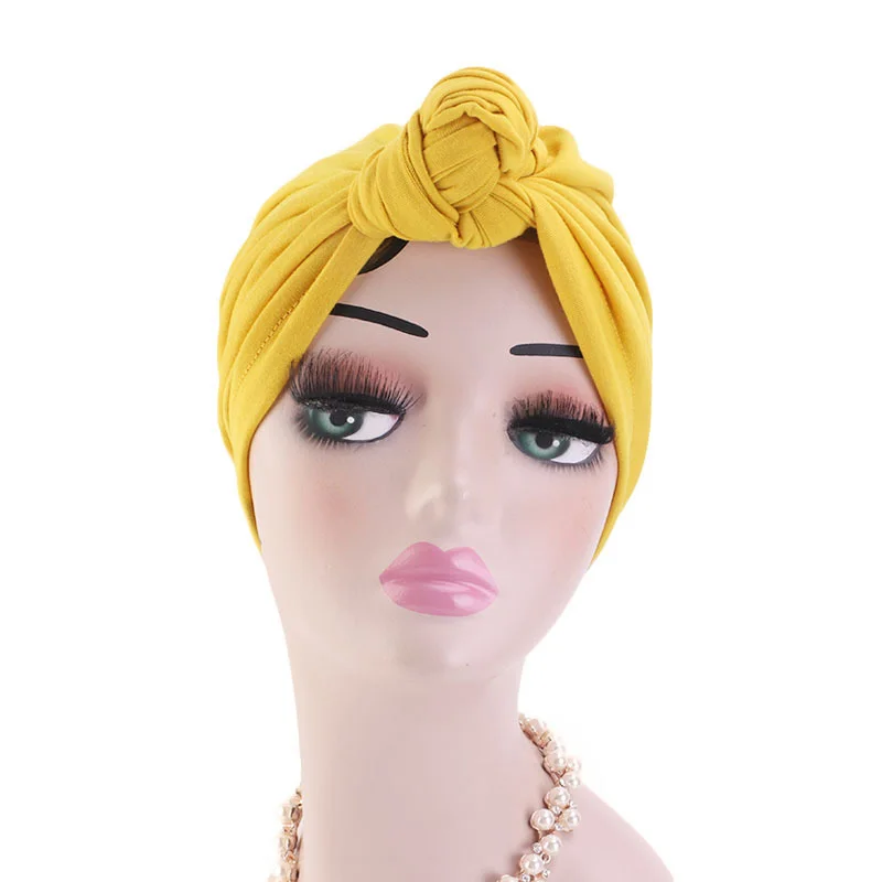 Женская эластичный тюрбан шапка с узлом, хлопковый хиджаб, однотонн...