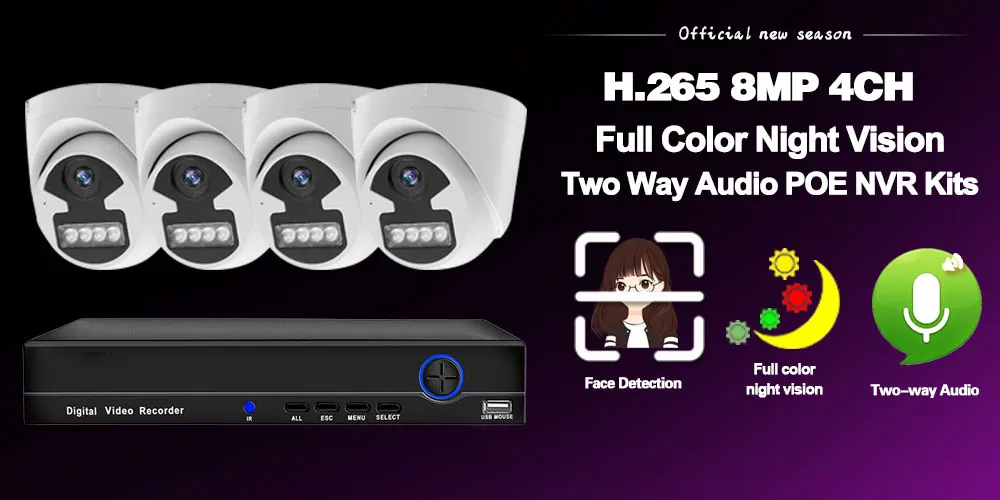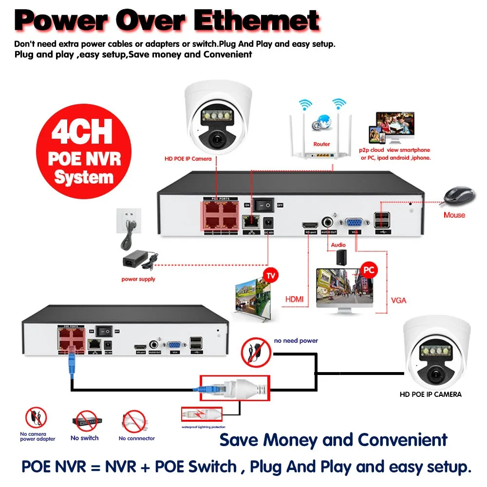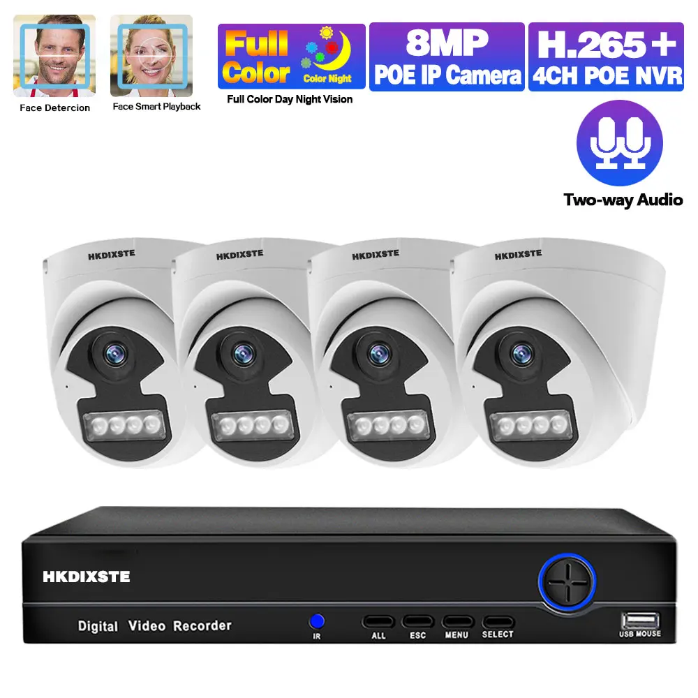 Полный Цвет Ночное видение домашний NVR безопасности Камера Системы 4K 5MP двухстороннее аудио POE IP видео Камеры Скрытого видеонаблюдения Камера Системы IP CCTV Наборы