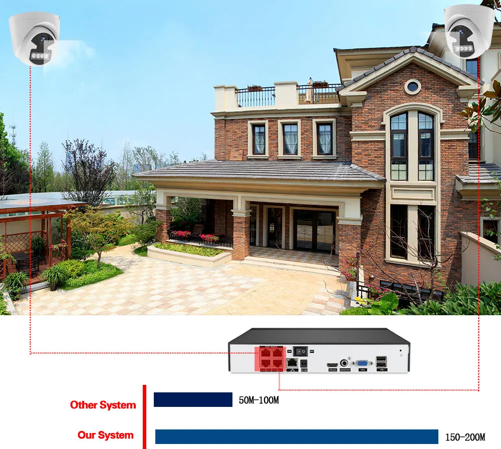 Максимальная поддержка системы POE150-200 мРасстояние передачи кабелей POE, что значительно увеличивает удобство домашней установки.