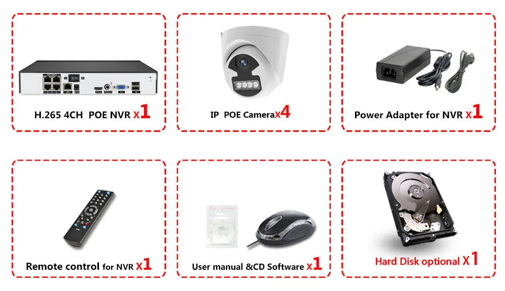 4 x HD POE IP 5. Mp/4K крытые ИК камеры дневного ночного видения;