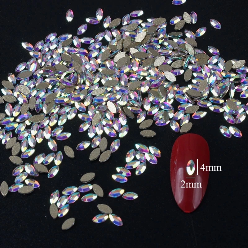 Хрустальные стразы для дизайна ногтей в форме конского глаза, 2x4 мм