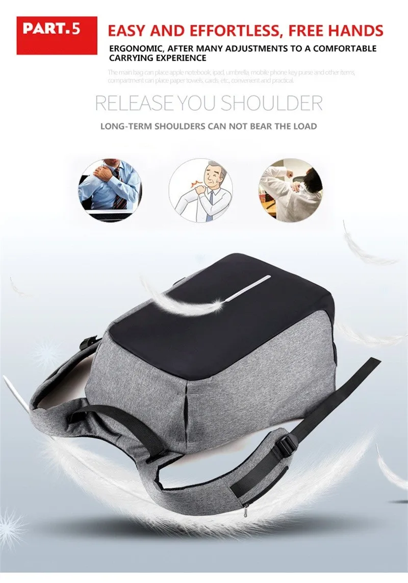 Дорожная сумка с защитой от кражи, вместительный деловой рюкзак для мужчин и женщин с usb-зарядкой, рюкзак для ноутбука, Студенческая школьная сумка на плечо1: водонепроницаемый, дышащий, Противоугонный, износостойкий, Осветляющий, ударопрочный2: внешний usb-кабель для зарядки, свободные руки, стильный и практичный3: двусторонняя молния для легкого и безопасного использования4. Дизайн плечевого ремня с отделениями для карт, Интимная и практичная