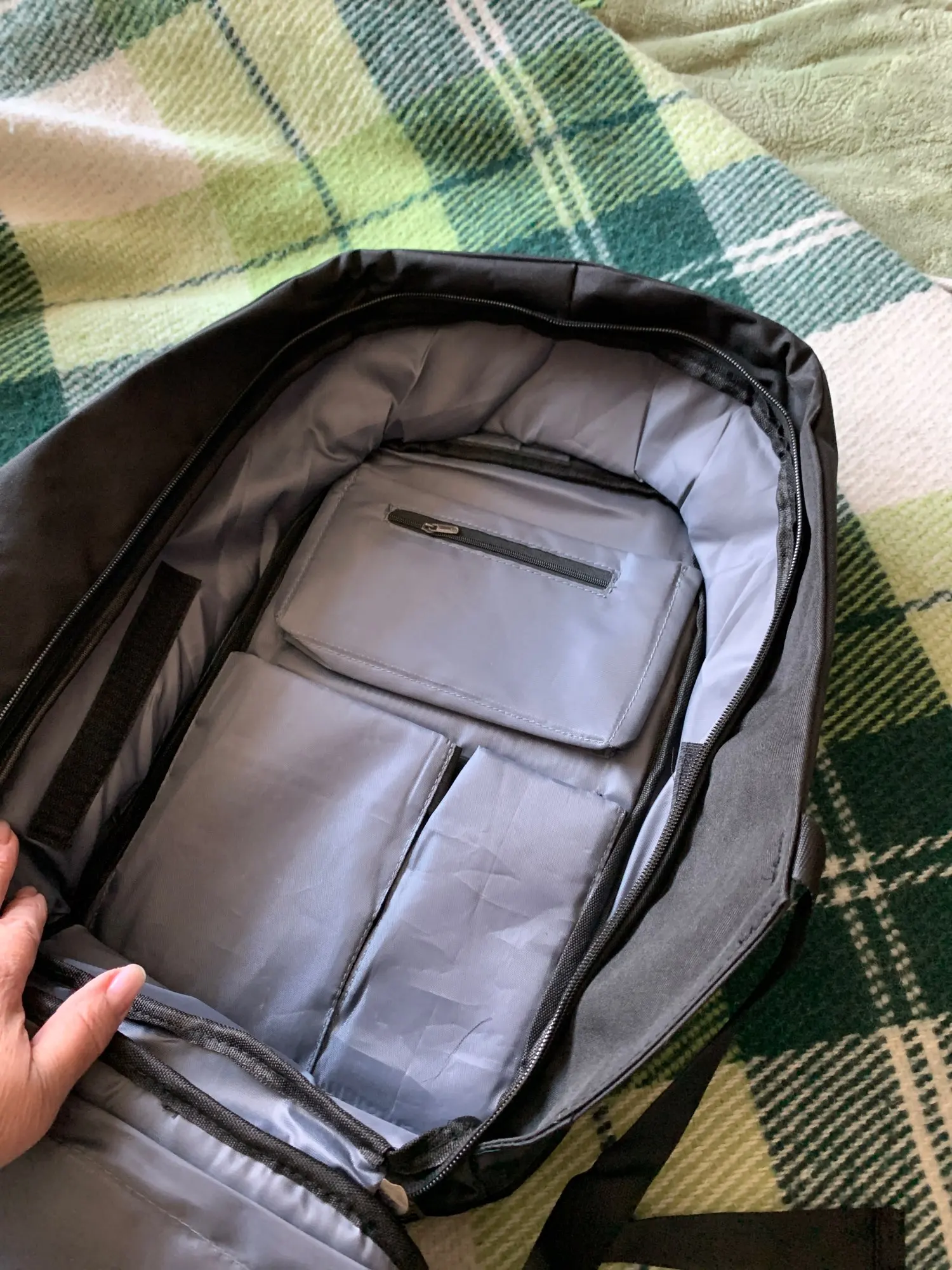Пришёл очееень быстро, качество отличное. Упакован хорошо, есть пакет на зип застежке для хранения. Без запаха. Куча карманов, открывается полностью или как обычный рюкзак. Прошит качественно, есть фиксирующие резиночки. Продавцу огромное спасибо!