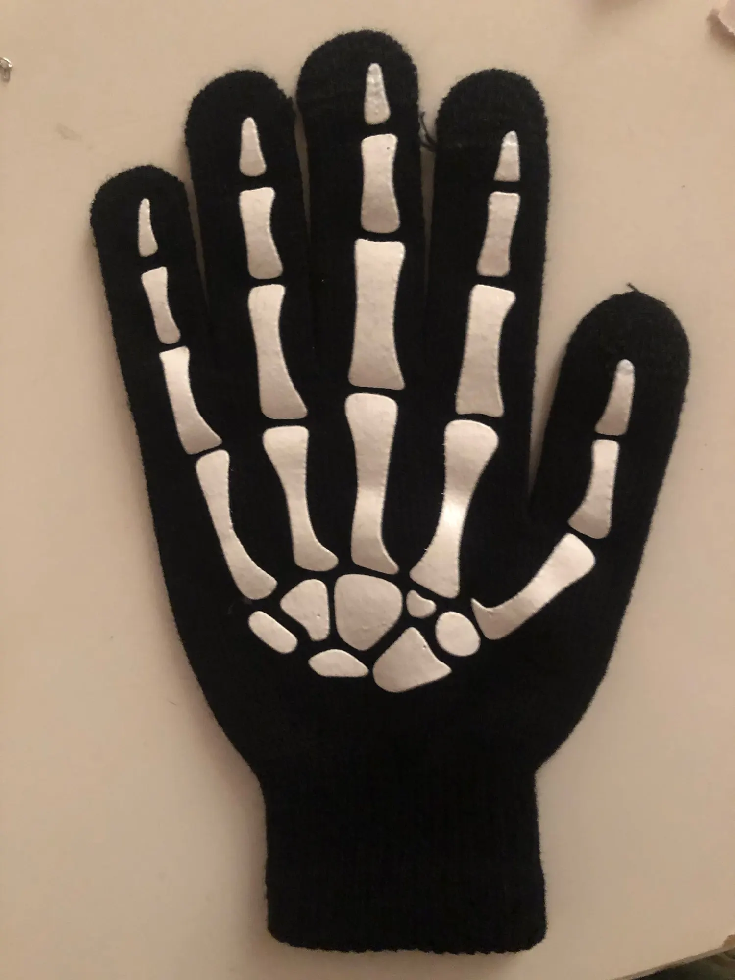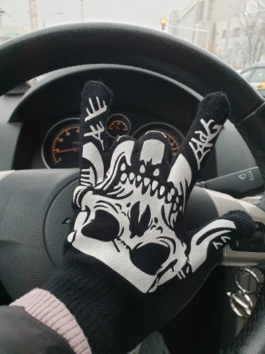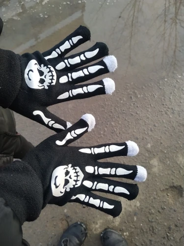 все доброго времени суток! перчатки шли долго из-за праздников, да и почта россии не особо торопилась, однако они пришли. целые, нитки не торчат, подходят на большую руку. ещё они светится в темноте, к "костям" очень сильно прилипает кошачья шерсть, но это не портит хорошего впечатления.