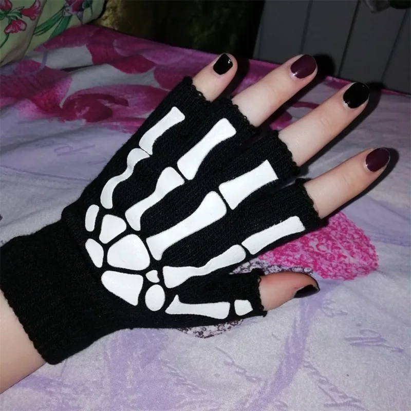 Светящиеся перчатки для Хэллоуина, зимние теплые Нескользящие ужасные перчатки для рук, черепа, гримаса, варежки, теплые перчатки унисекс