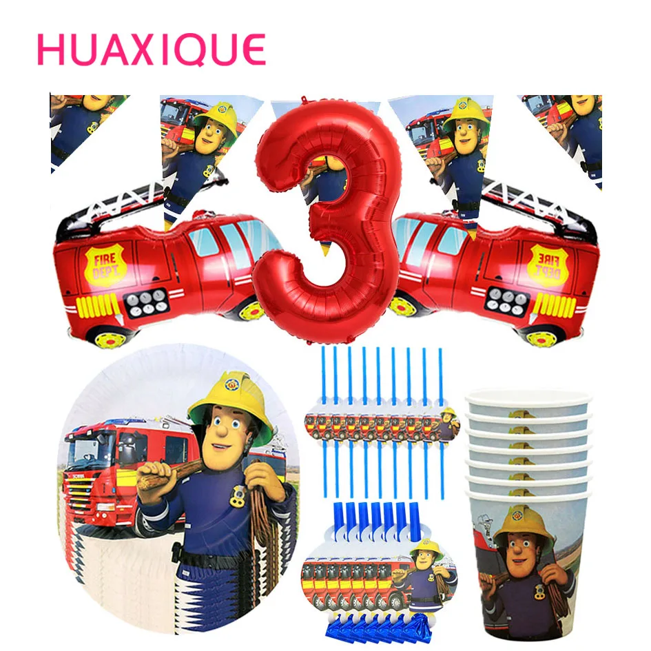 Декор для дня рождения Пожарный Сэм одноразовая посуда бумажный стаканчик, тарелка соломинка баннер с днем рождения пожарная машина воздушный шар