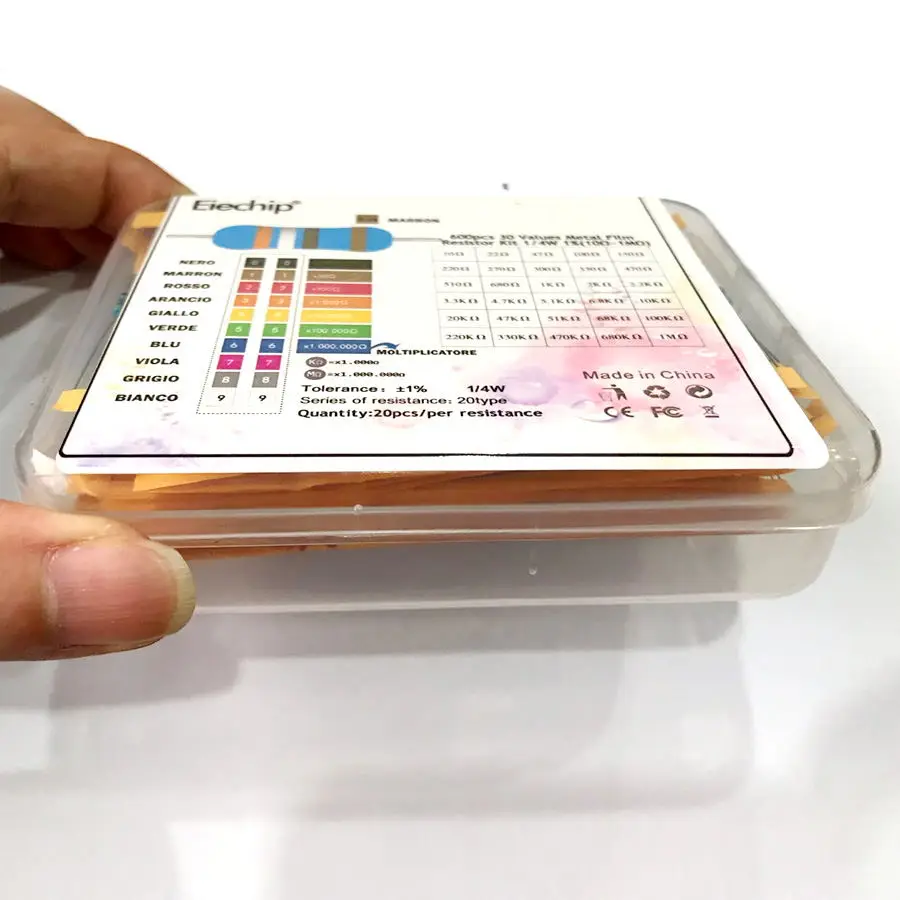 600 шт./лот 30 значений * 20 шт. 1% 1/4 Вт пленочный резистор Набор Diy металлический резистор Набор Использование цветного сопротивления кольца (10 Ом ~ 1 м Ом)