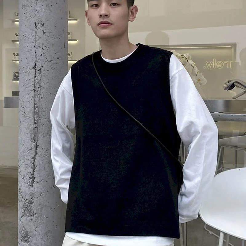 Шерстяной вязаный жилет для мужчин осень 2022 Новинка свободный Универсальный корейский модный тренд вязаный свитер жилет куртка модная уличная одежда