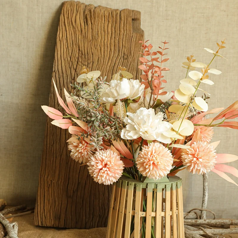 Искусственные цветы, пионы, высокое качество, Осеннее украшение, букет невесты, винтажные искусственные цветы для свадьбы, украшение для дома