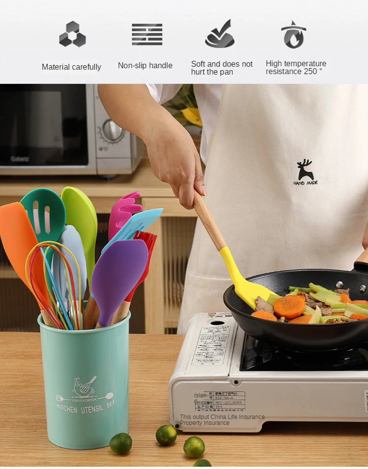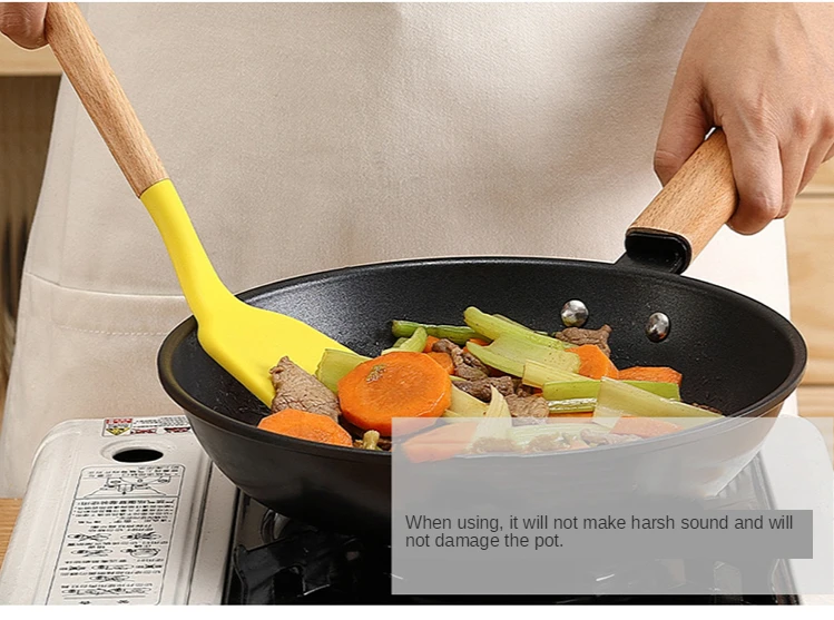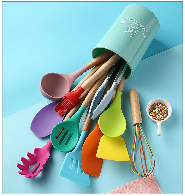 Термостойкая Силиконовая кухонная посуда набор с деревянной ручкой антипригарные многоцветные Кухонные гаджеты Инструмент Кухонные принадлежности хорошие