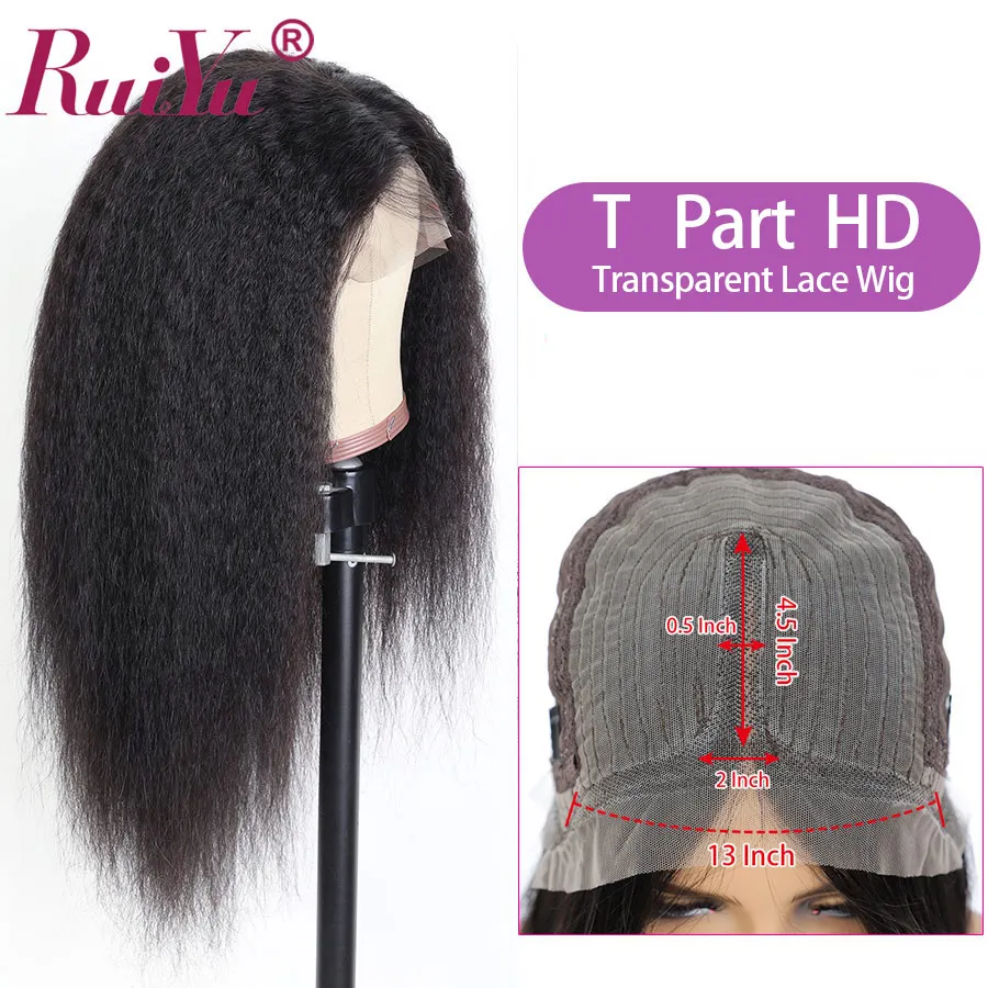 Парик Ruiyu T Part, парик с кудрявыми прямыми кружевными волосами, парики из человеческих волос 13 х4, парик на сетке спереди, парики из бразильских человеческих волос, парики без повреждений для черных женщин