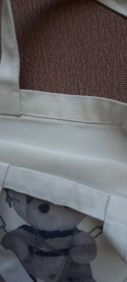 сумка качественная и приятная на ощупь без запаха и ниток. рисунок хороший. мне правда пришел с небольшим дефектом из за того что сумка замялась на ней напечатали рисунок не по центру . написала продавцу он сразу же согласился вернуть деньги . в общем все равно рекомендую продавца и товар . очень быстрая доставка около 2 недель ехало