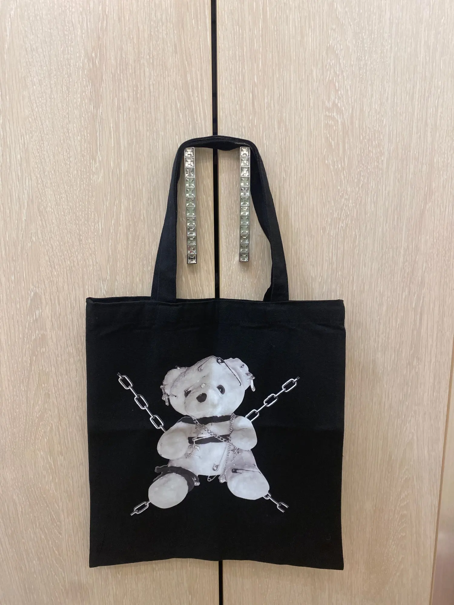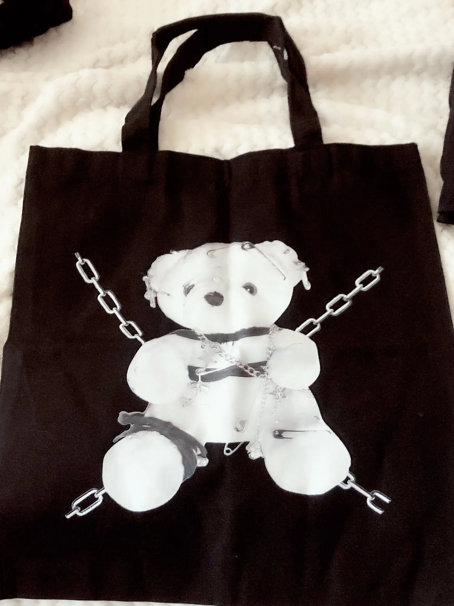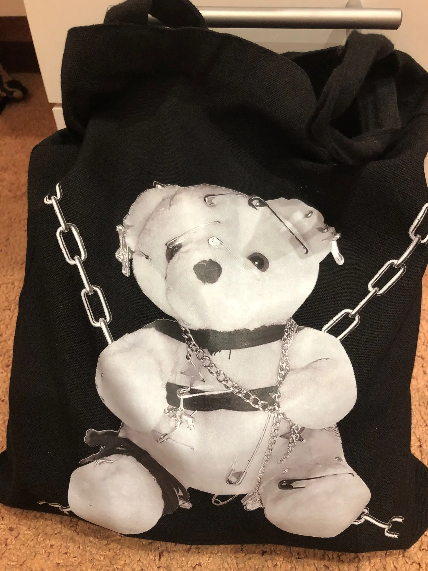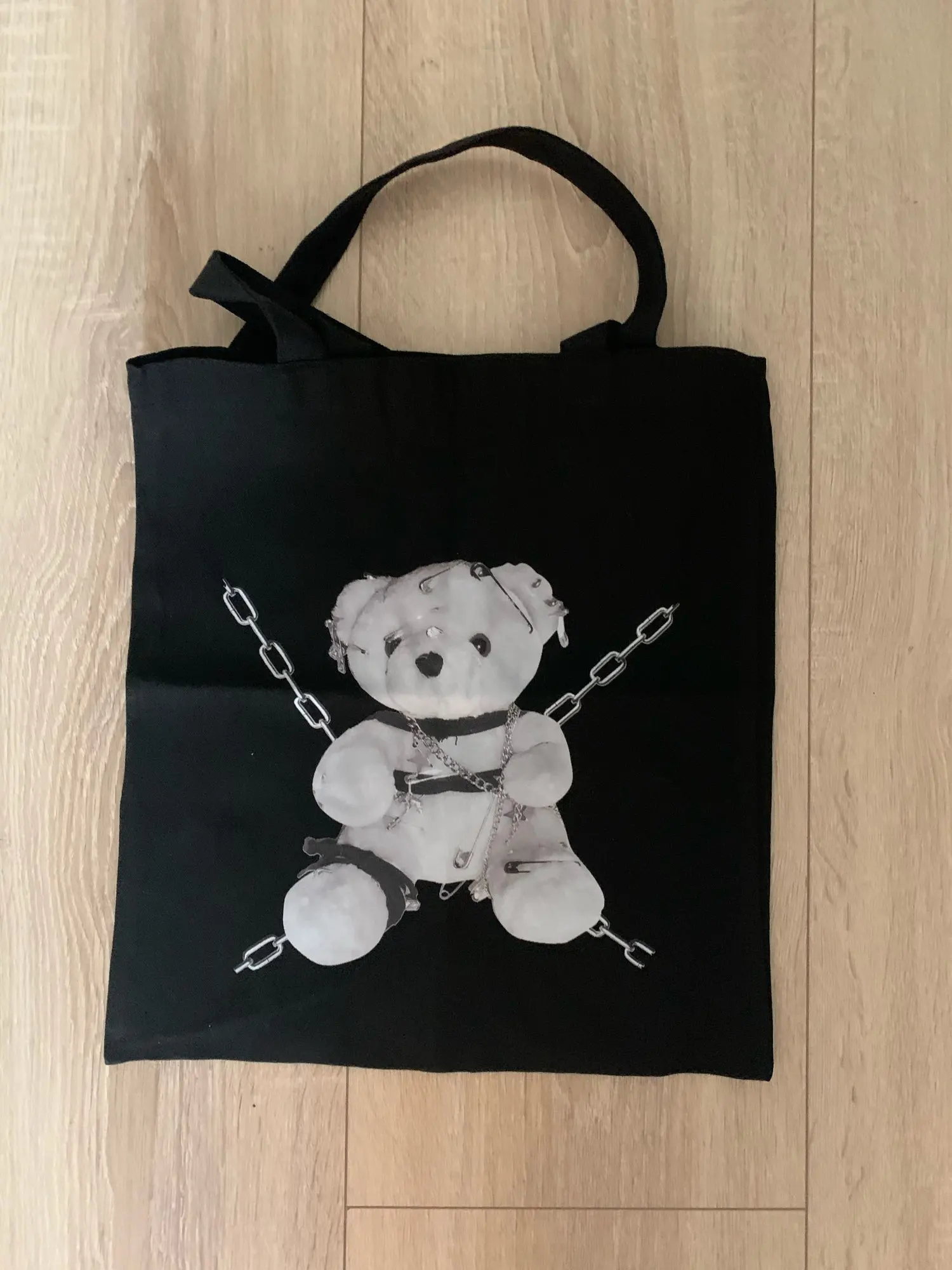 Холщовая Сумка с изображением медведя в готическом стиле, винтажная, в стиле хип-хоп, в японском стиле Харадзюку