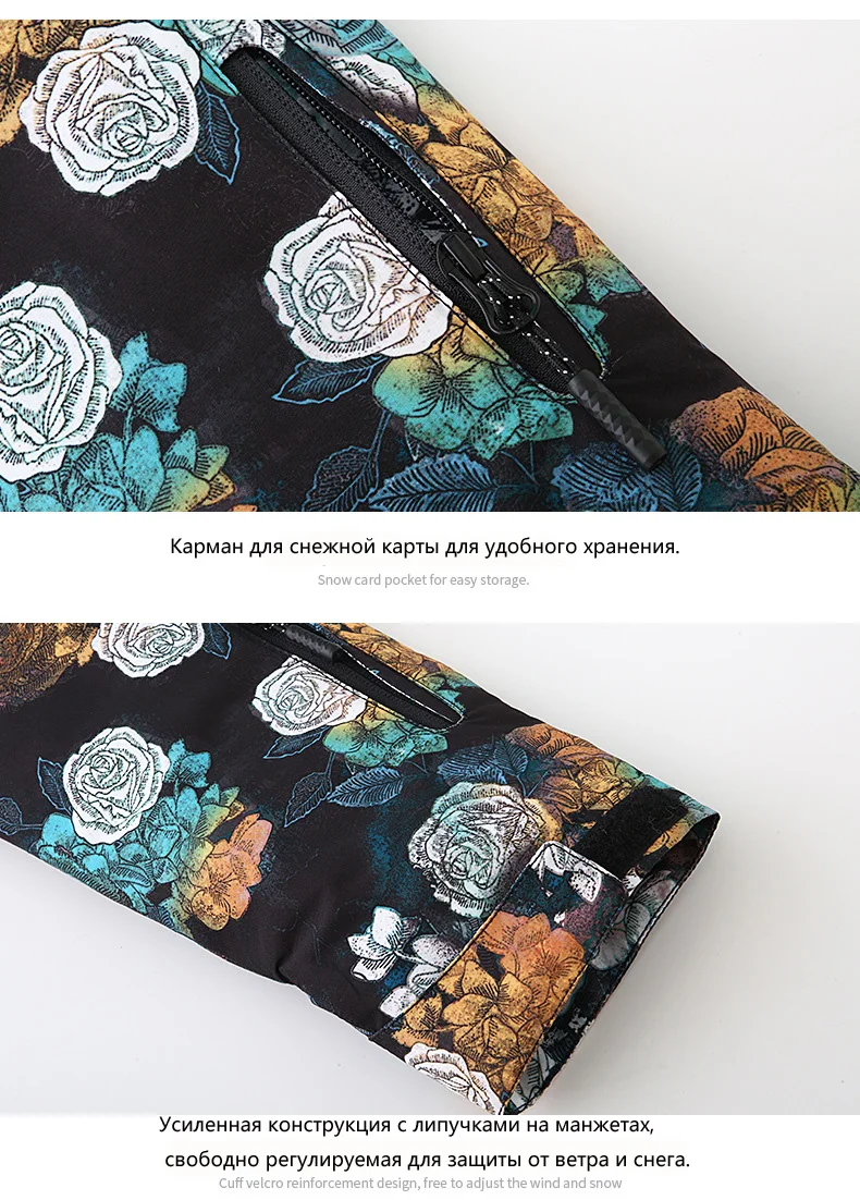 Новинка, женская зимняя одежда с цветами розы, одежда для сноуборда...