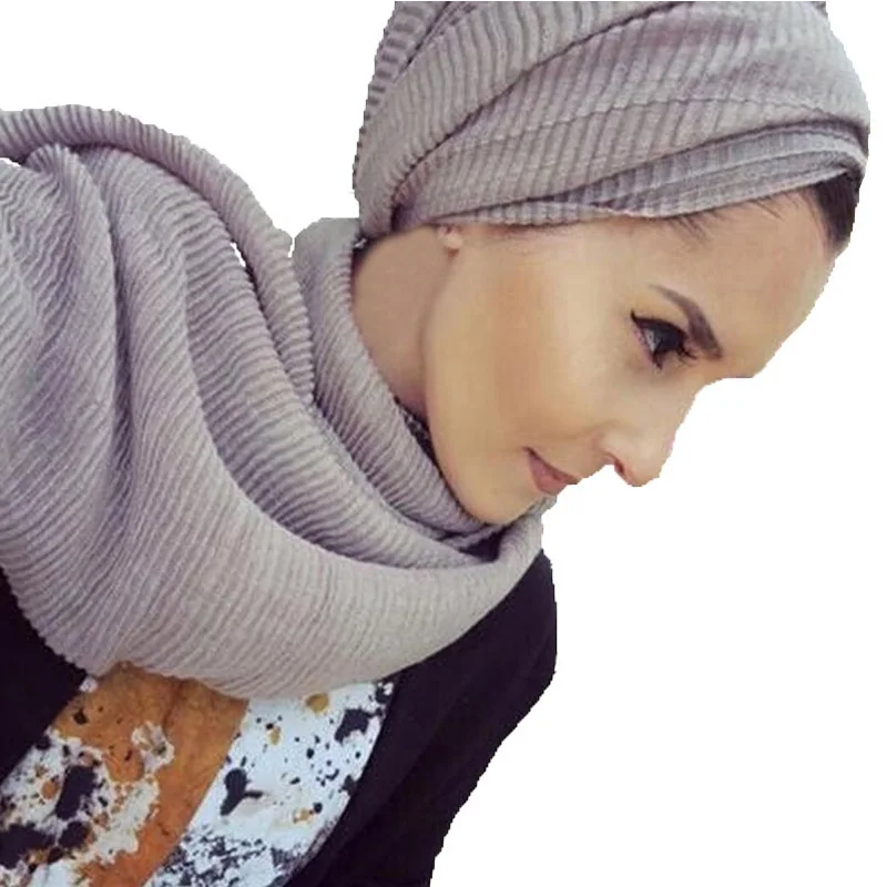 Для женщин Плиссированное Crinkle хлопок Hijab шарф Мусульманский п...