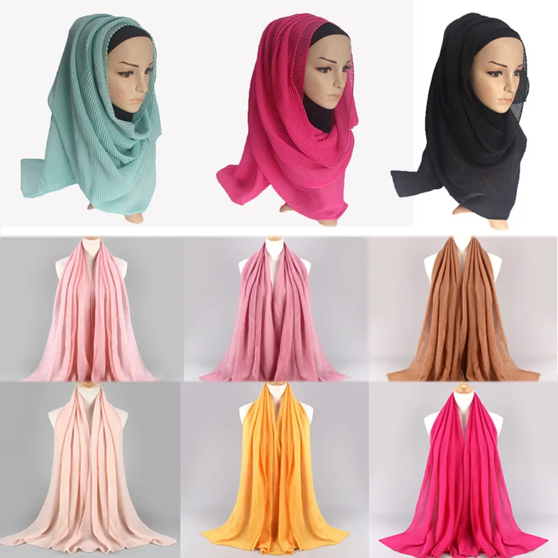 Горячая Распродажа плиссированный длинный хиджаб, элегантная шаль, ...