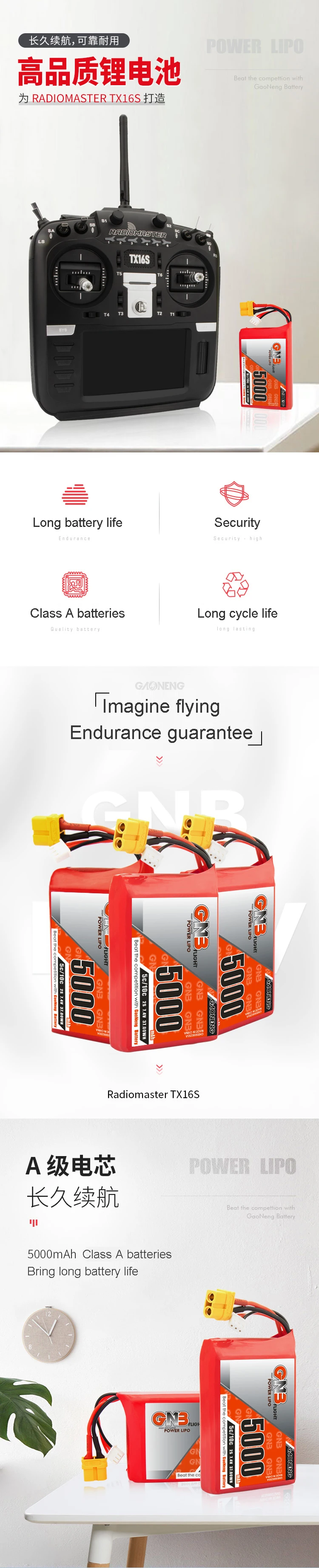 Новый аккумулятор большой емкости GAONENG 5000 мАч 2S 7,4 В 5C Radiomaster TX16S с пультом дистанционного управления