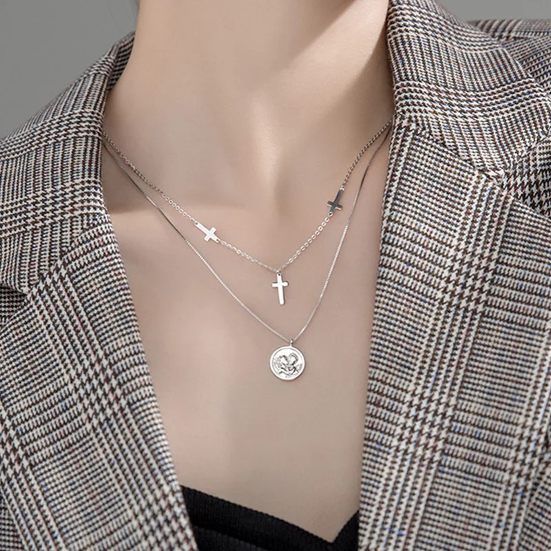 Trustdavis Реальный 925 Стерлинговое Серебро тайское модное серебро милая подвеска в виде креста с монеткой короткое ожерелье до ключиц для женщин ювелирные изделия для девушек DS463