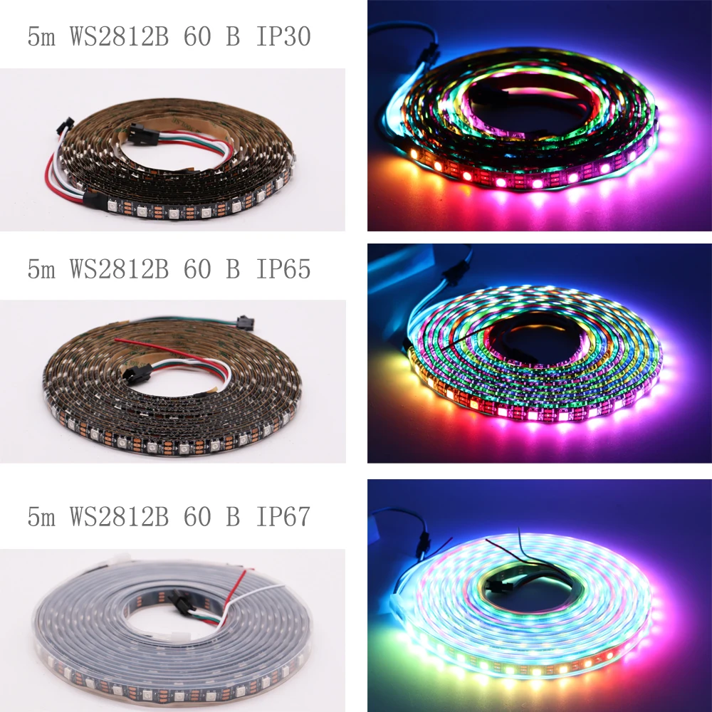 WS2812 RGB 5050 Светодиодная лента для спальни кухни индивидуально Адресуемая Пиксельная Светодиодная лента 3060144LED sM WS2812B DC5V