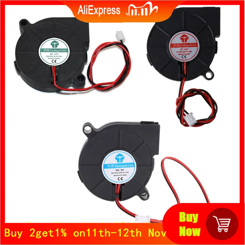3D-принтеры охлаждающий вентилятор 5015 50x50x15 мм центрифугальный дутьевой вентилятор 5V 12V 24V 2-контактный Бесщеточный Охлаждающий вентилятор Cooler