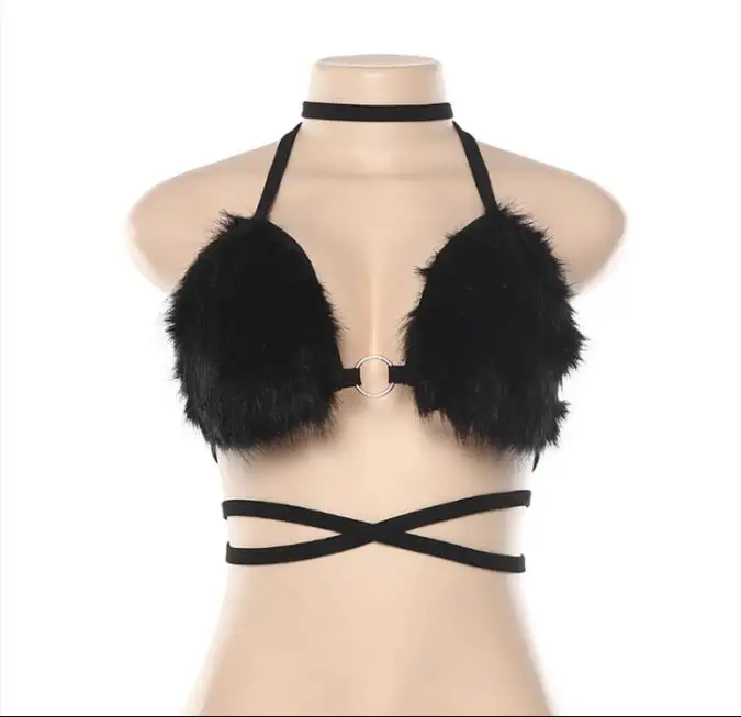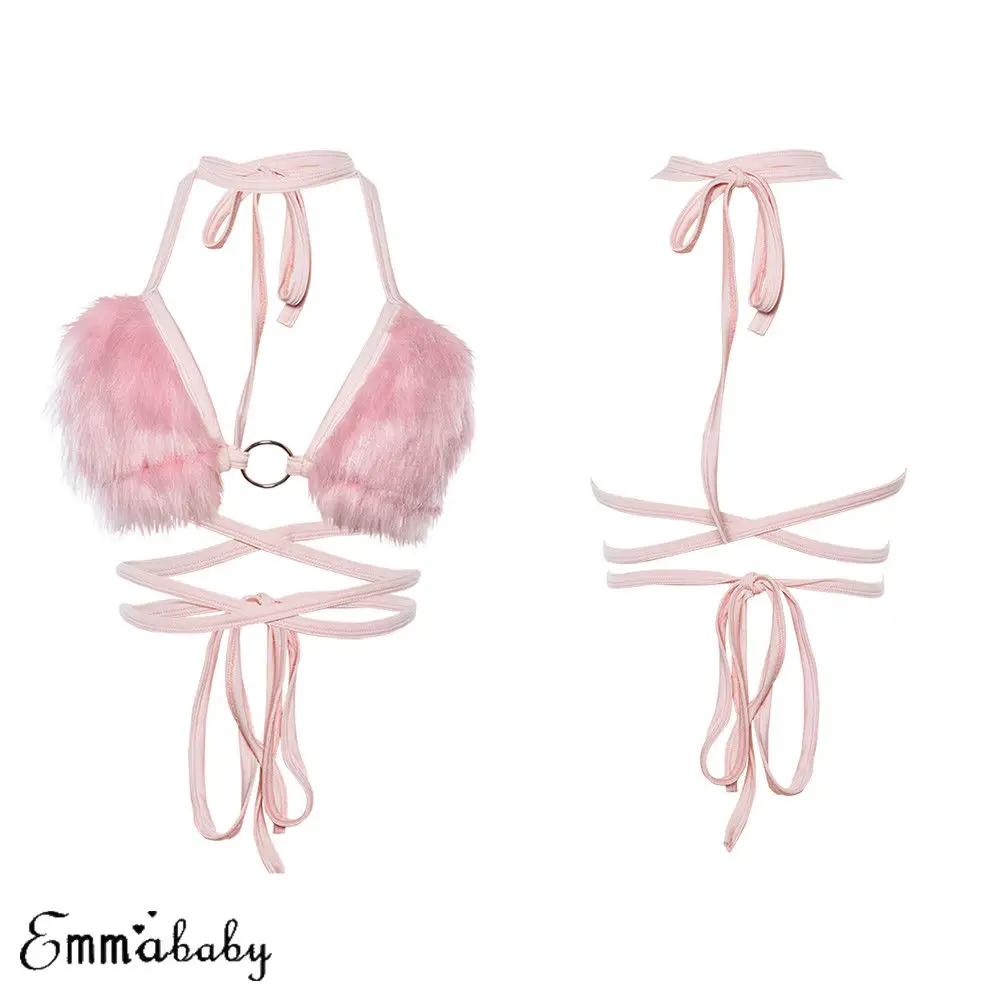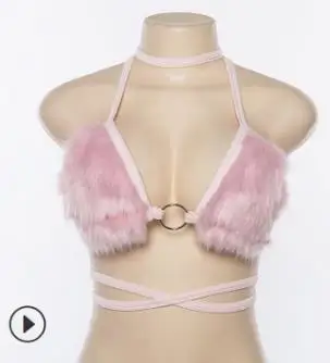 Сексуальные женские меховые бюстгальтеры розового цвета, женский ук...