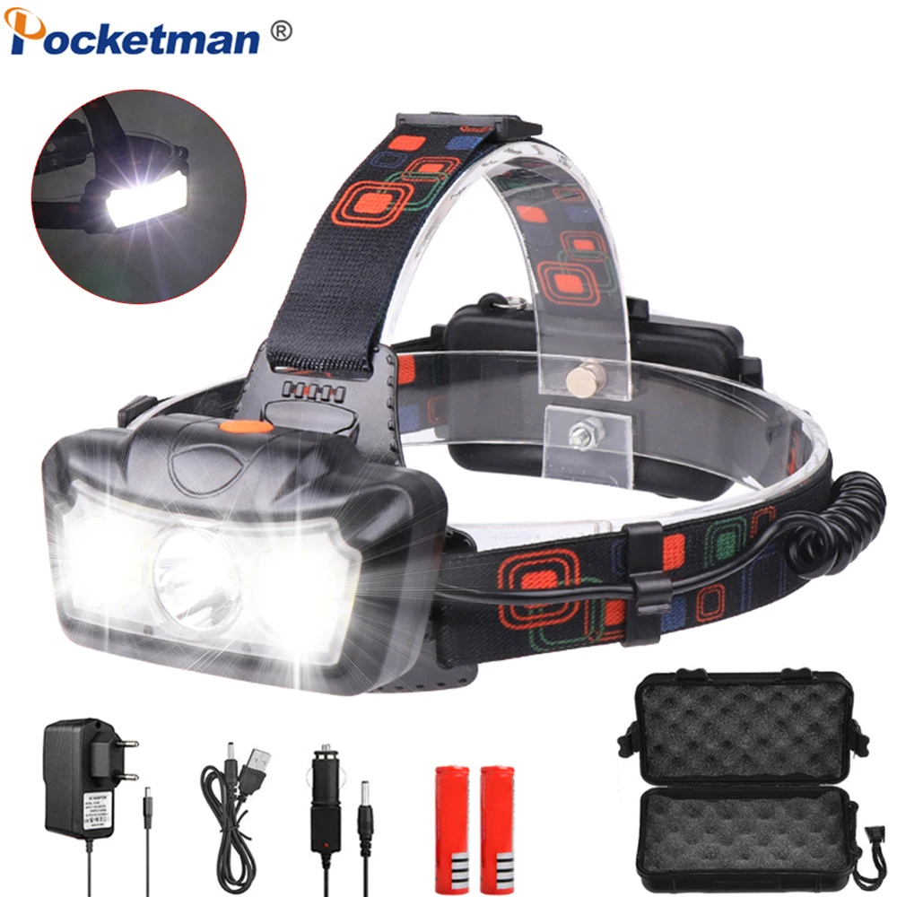 Водонепроницаемый светодиодный налобный фонарь с зарядкой от USB, мощный налобный фонарь T6 COB с аккумулятором 18650, 4 режима