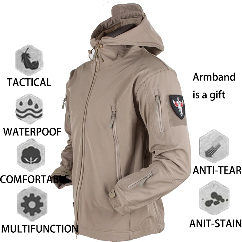 Мужская куртка из мягкой кожи акулы, тактическая ветрозащитная водо...