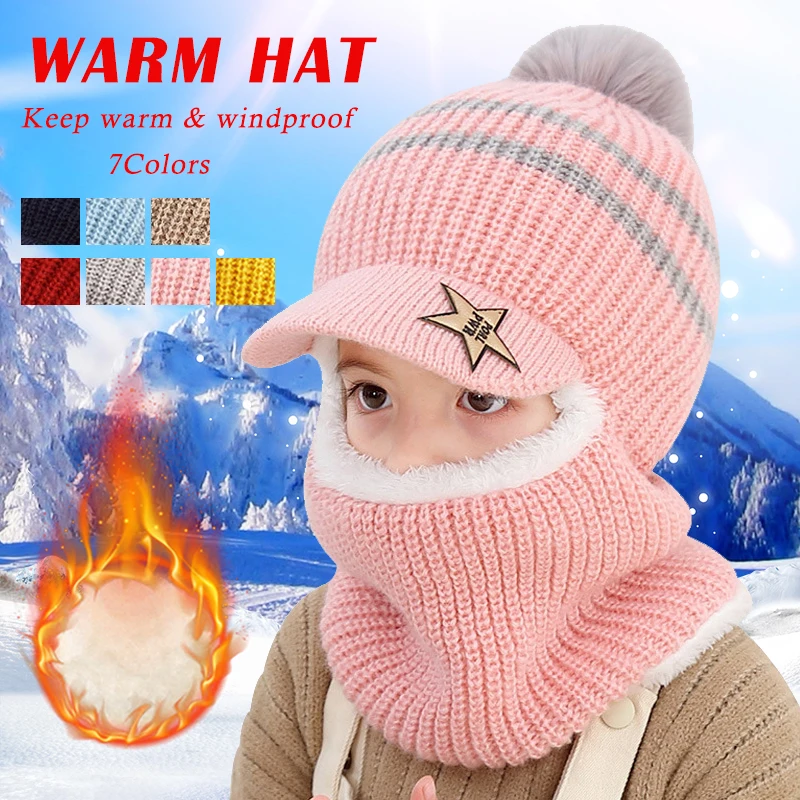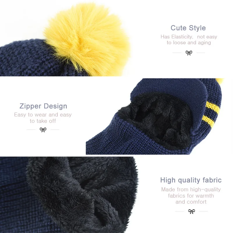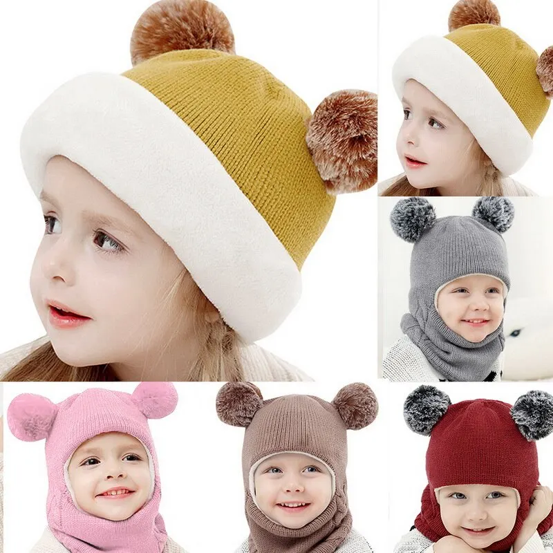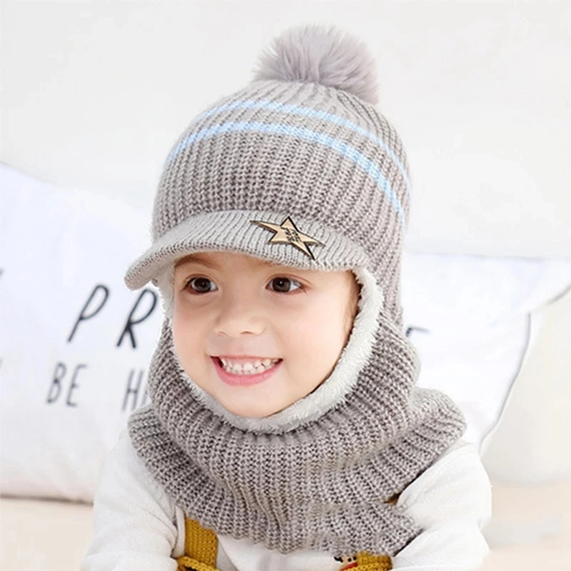 Шапка и шарф Детские, зимние, вязаные, с ушками, для мальчиков и девочек