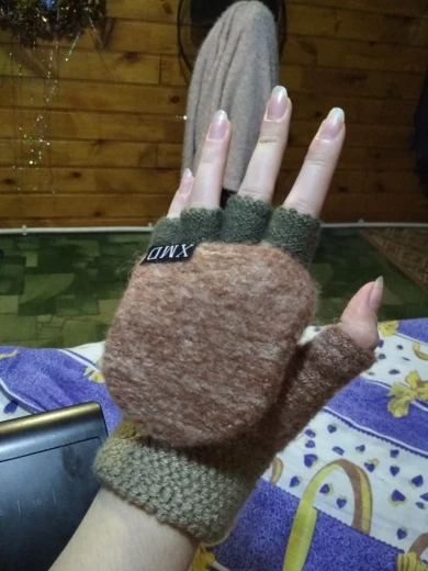Перчатки очень хорошие: мягкие, пушистые и красивые. Полностью соответствуют фотографии продавца. Но мне пришли с браком на одной перчатке. Нитка, которая вплетена в вязку кое-где была отдельно, а на ее местах в пряже пустые впадины. Так не поносишь и не обрезать, потому что эта нить начнёт вся расползаться. Жаль. Спор открыла, алиэкспресс в тот же день вернул деньги. Буду ещё заказывать, потому что перчатки хорошие. Мой размер ладони - 16см, сидят отлично. Тянутся хорошо.