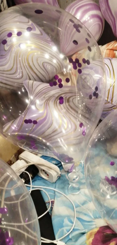 Получил очень быстро. Выглядит хорошо, еще не раздут. Хорошо упакованный, каждый воздушный шар с маленькой эластичной блеском, чтобы он не упал. Они выглядят стойкими.