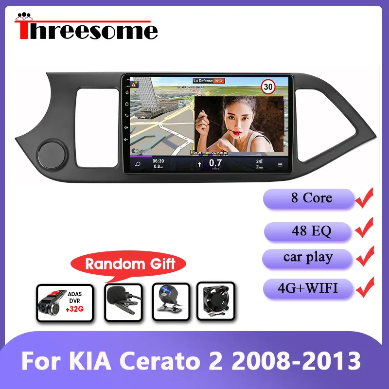 Android 10 автомобильный радиоприемник, мультимедийный плеер для KIA PICANTO Morning 2011-2016, GPS-навигация, 2Din RDS DSP, плавающее окно, Раздельный экран