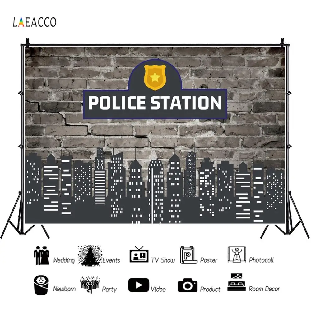 Laeacco кирпичная стена здание города полицейский участок тема Детские вечерние фото фон фотография задник фотостудия реквизит