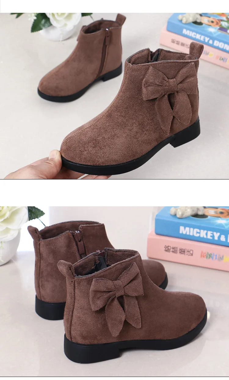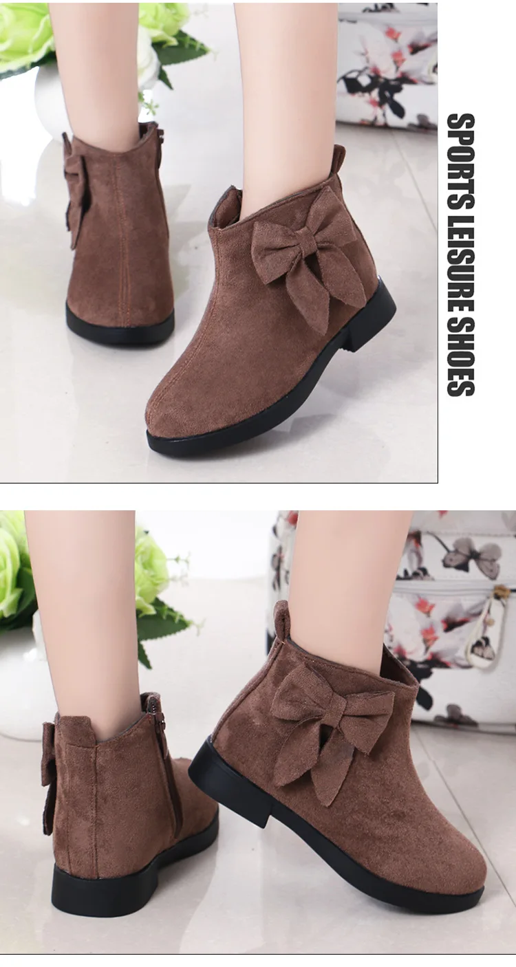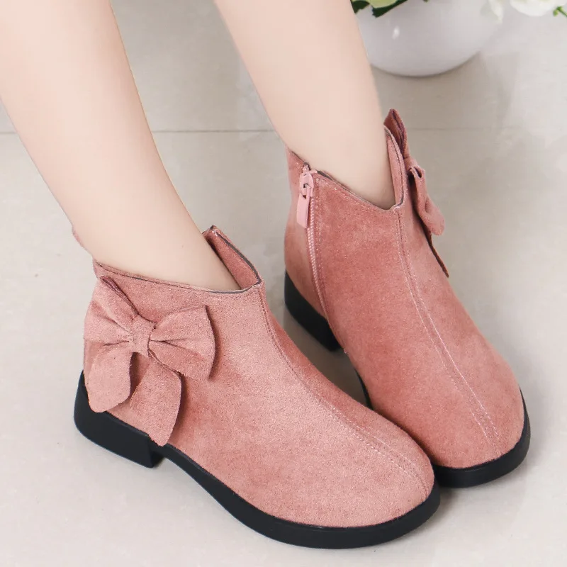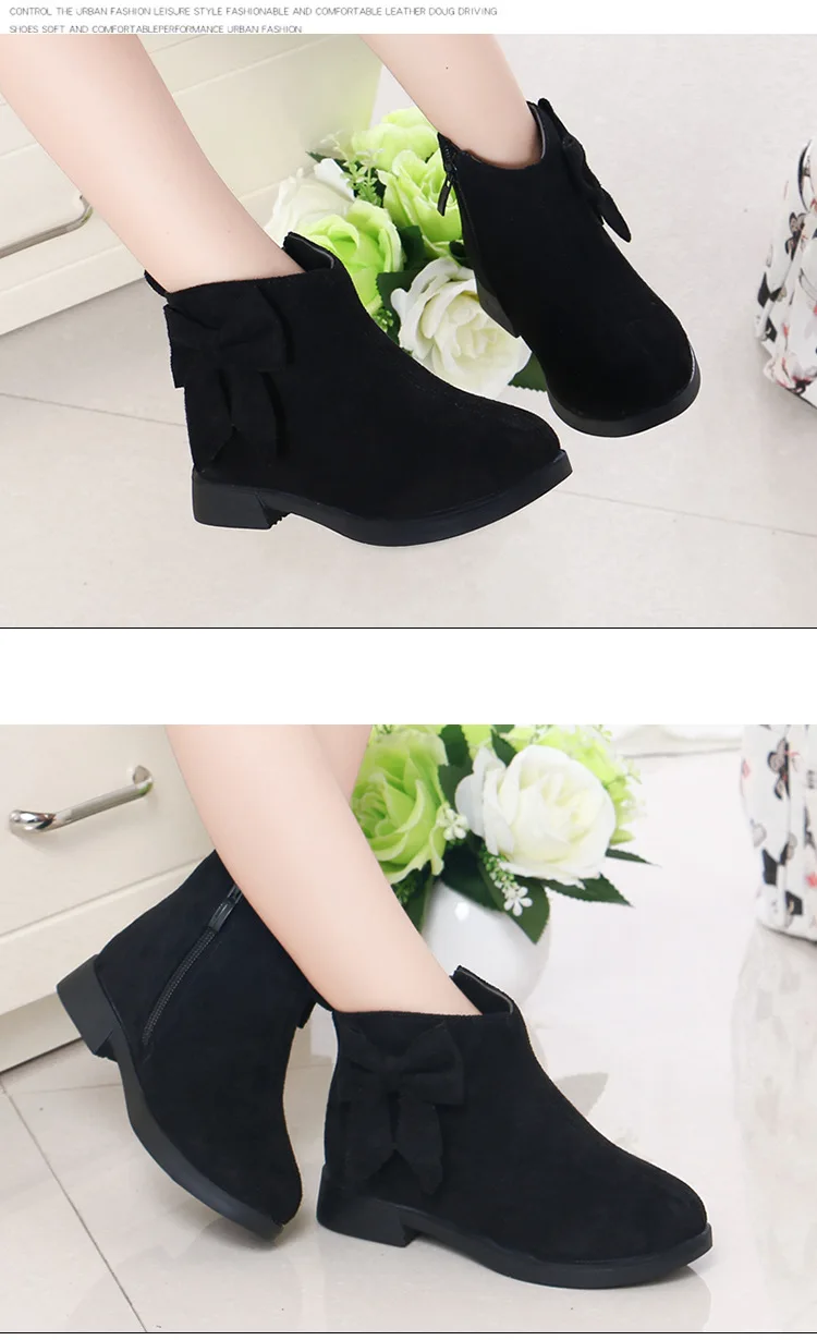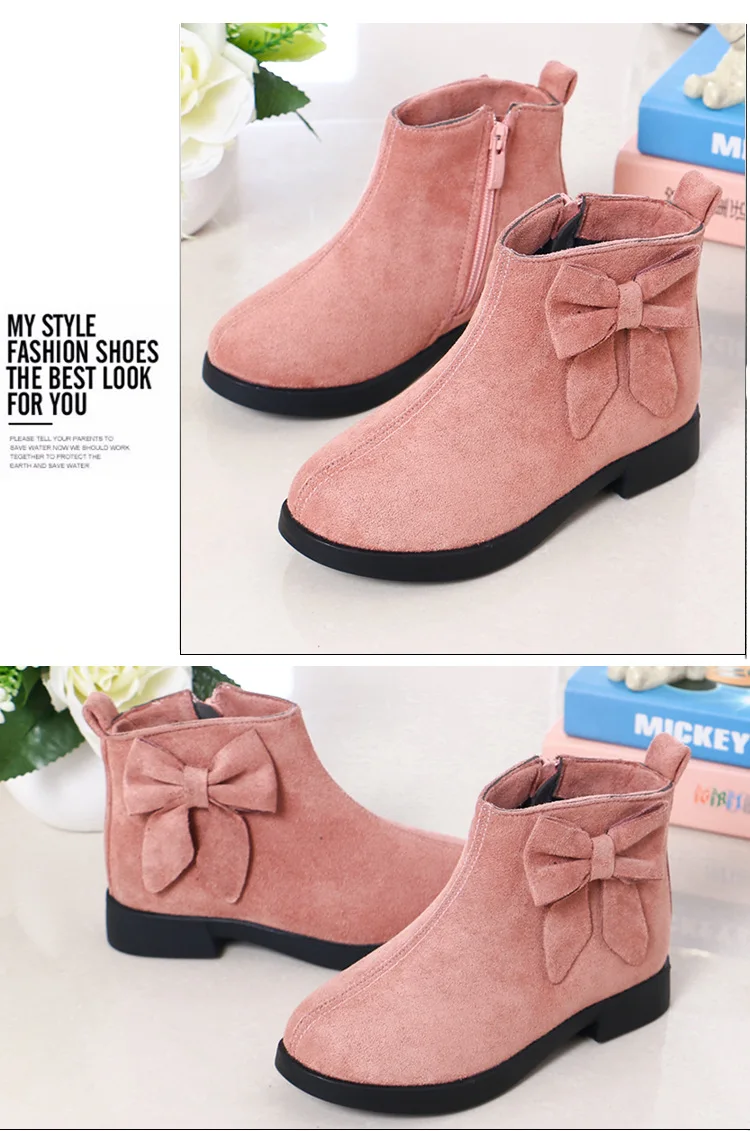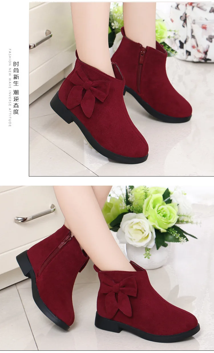 Короткие замшевые ботинки для девочек, однотонные милые детские Бот...