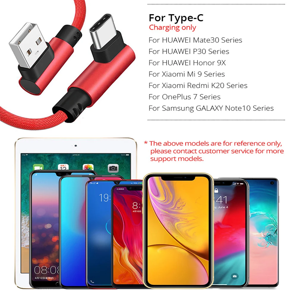 3 вида цветов 1 м 2 м 3 м 90 градусов USB Type C кабель для Samsung...