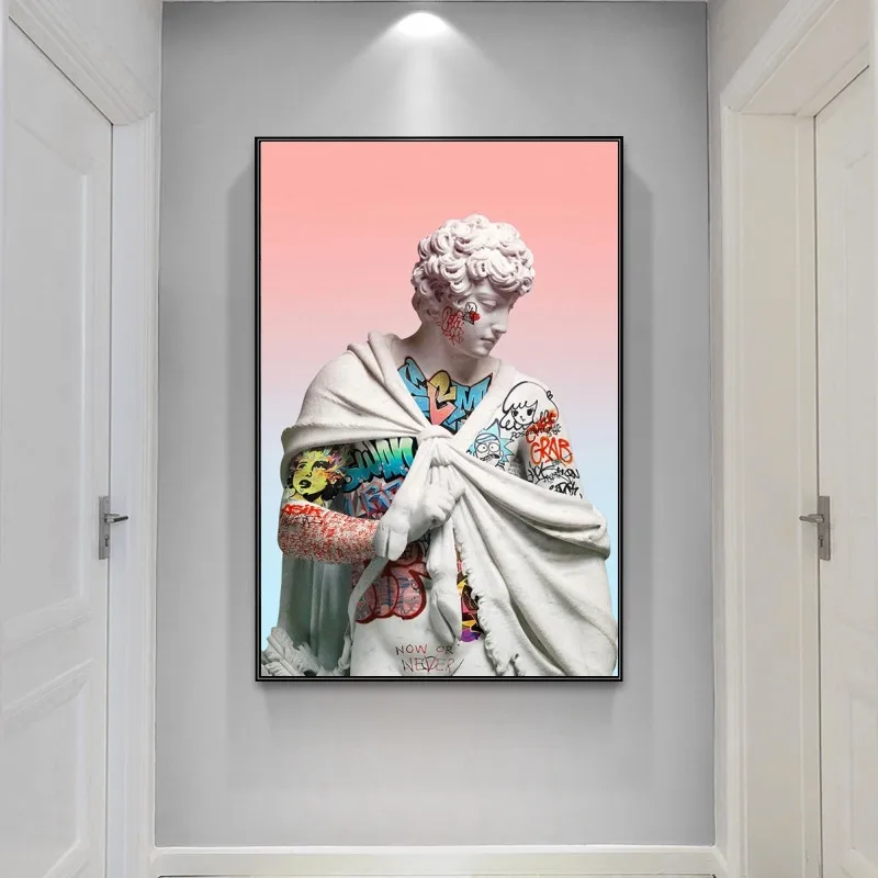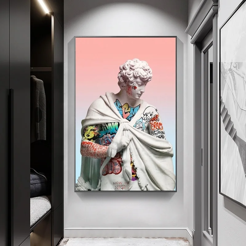 Парным Скульптура Давида из плотной ткани арт Плакаты граффити Давида из плотной ткани настенные картины в стиле протестного уличного искусства, изображение Настенный декор