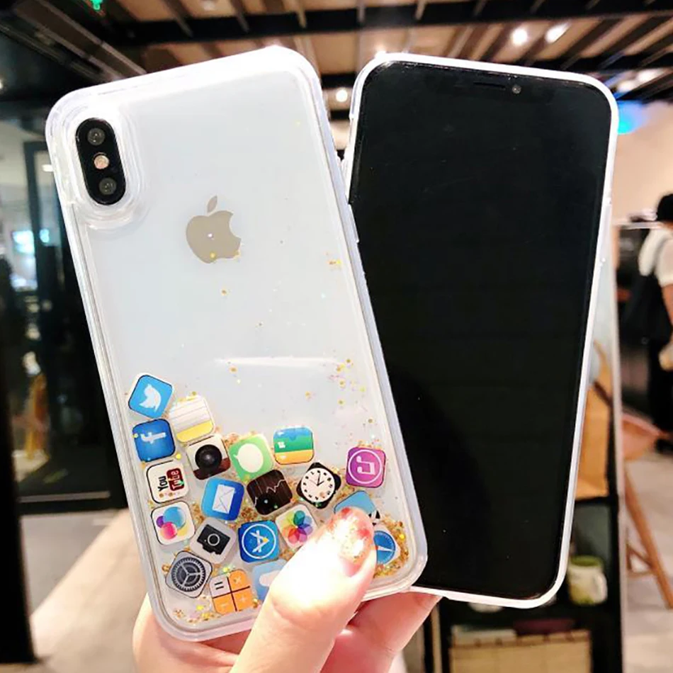 Model NumberCute Mobile Apps Icon Liquid Quicksand Case