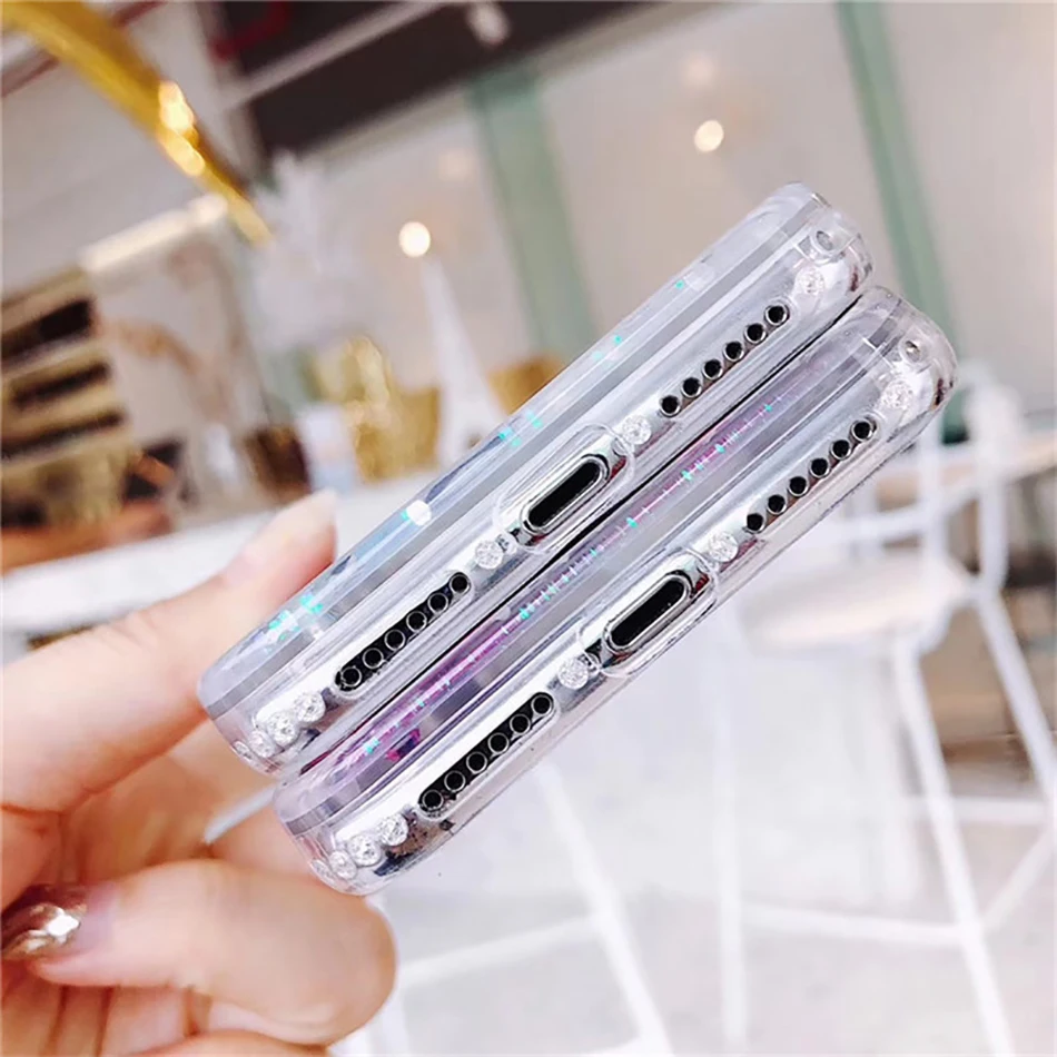 Жидкий чехол для телефона для iPhone12 11 SE XS 7 8 плюс со стразам...